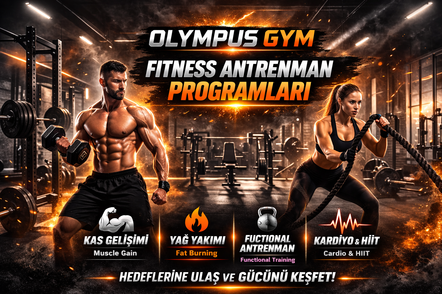 Olympus GYM Fitness’te modern ekipmanlar ile fonksiyonel antrenman alanı bulunmaktadır.
